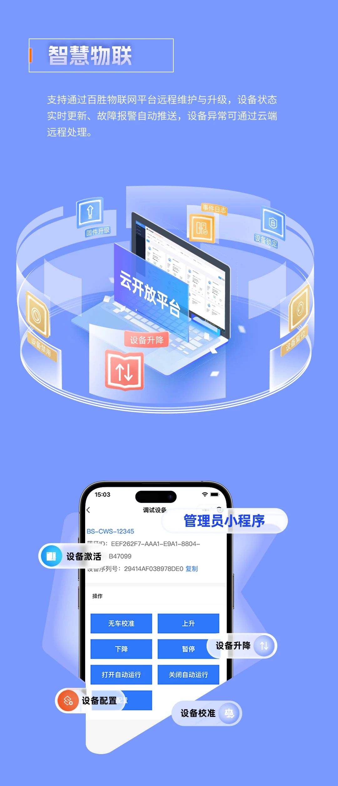 • 雲端控製:通過小(xiǎo)程序/PC端遠程(chéng)升降鎖(suǒ)體,批量(liàng)處理故障(zhàng);